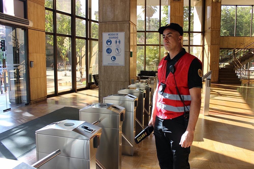 a través de personal de seguridad certificados por OS-10 de Carabineros de Chile que garantizan el cumplimiento de los estándares de seguridad.